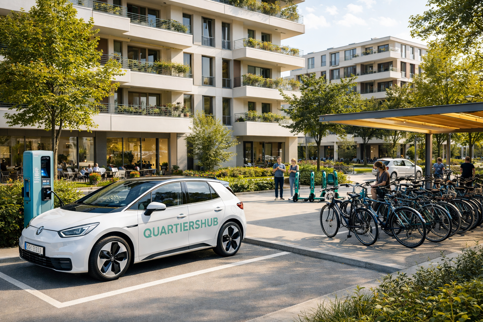 Wir unterstützen Sie von der Satzungsprüfung bis zum genehmigungsfähigen, umsetzbaren Mobilitätskonzept. Sie erreichen uns unter info@quartiershub.com.